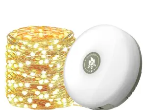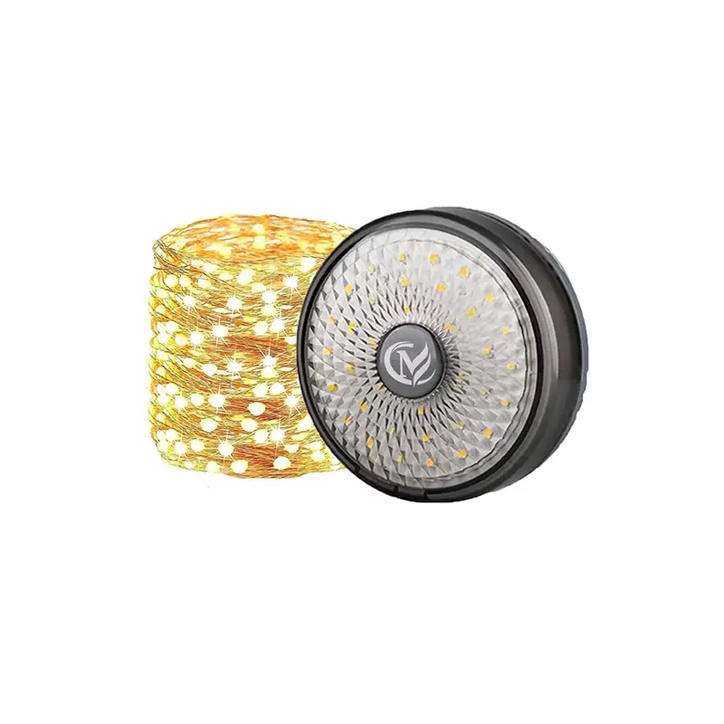 مجهز به ریسهای از چراغهای LED که میتوان آن را به اطراف چادر، درختان یا سایر ساختارها پیچید